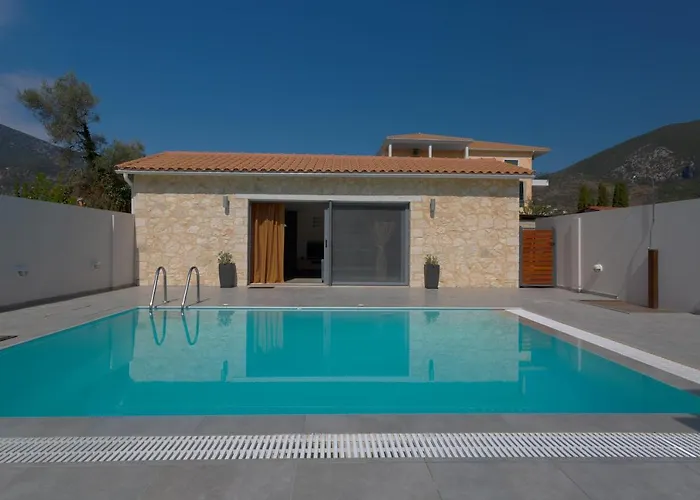 Villas Odysseas is gesitueerd 2 km van Watervallen van Nidri en vertegenwoordigt een 0-slaapkamer accommodatie met een terras. Deze villa biedt toegang tot een privézwembad.